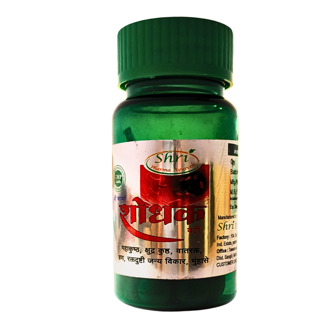 Shodhak Vati is an Ayurvedic herbal formulation made from powerful natural ingredients known for their detoxifying and skin-supporting properties. It works internally to cleanse impurities from the blood and helps improve skin clarity and health.